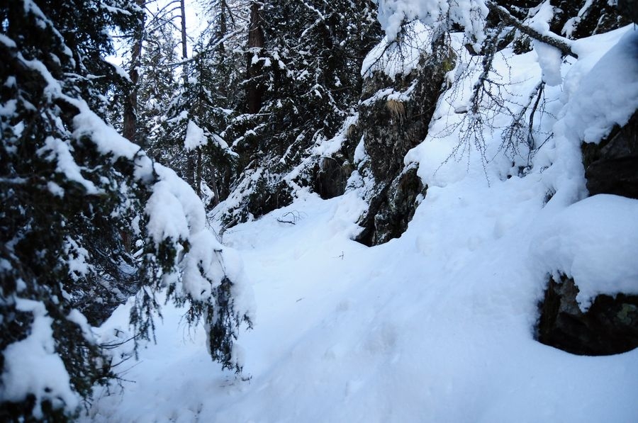 Doch es kam – wie bei fast jeder Wanderung im Winter – wieder etwas anders. Obwohl bis auf den Beginn der Route keine Markierungen da waren, ließ mich mein Orientierungssinn heute zur Abwechslung mal nicht im Stich. Es soll zwar einen Wanderweg geben (aber wie gesagt, nicht markiert) der war allerdings aufgrund des Tiefschnees nicht zu sehen.