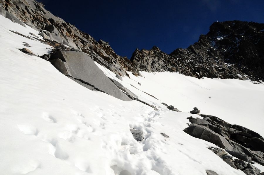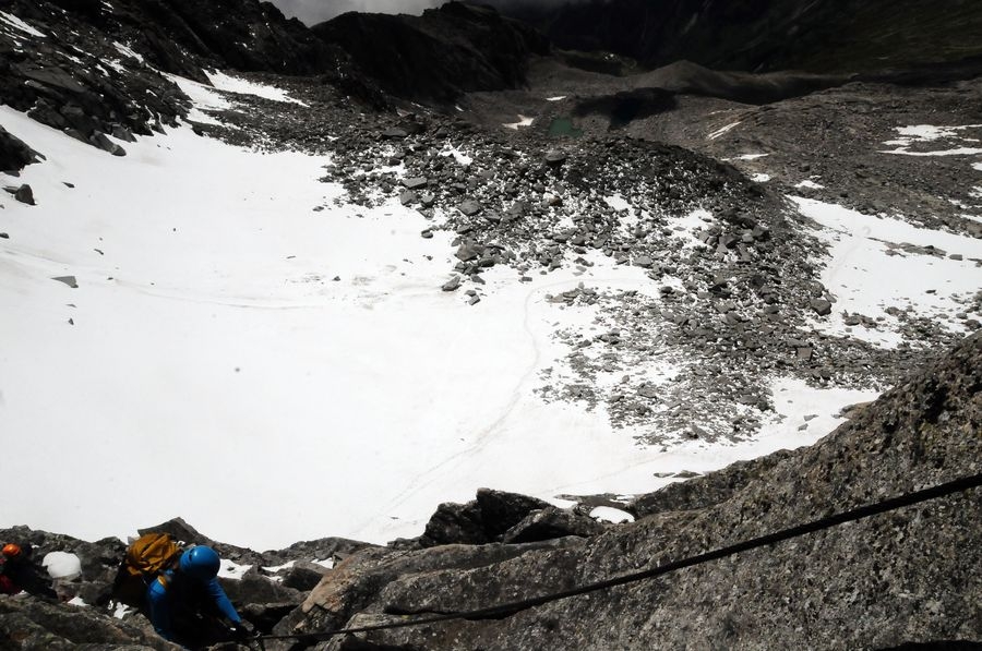 Klettersteig-Set zu empfehlen; Steigeisen und Eispickel je nach Wetterlage (im Sommer kleine, kurze Schneefelder)