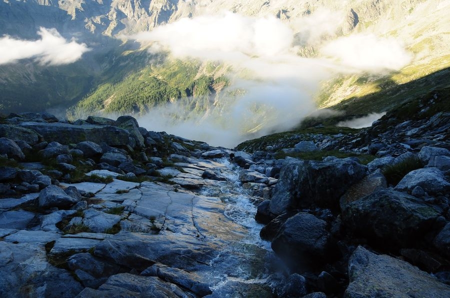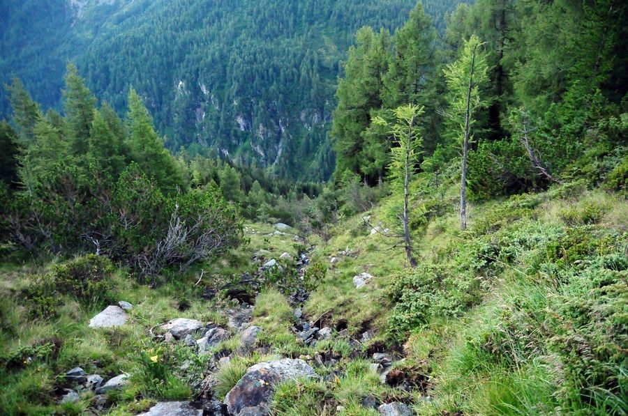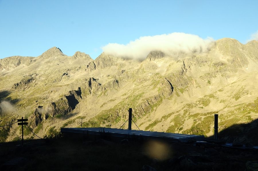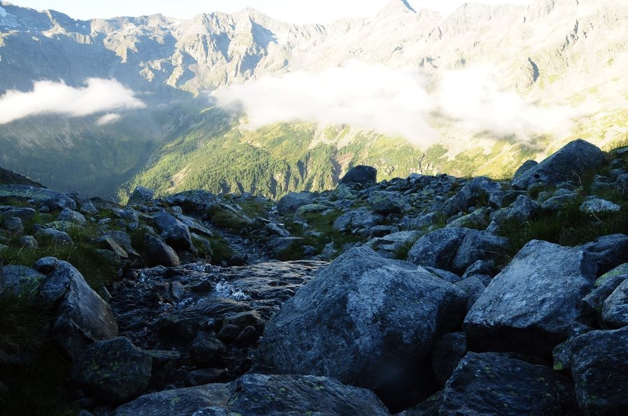 Direkt nach dem Start der Tour sollte man einen kleinen, kurzen Abstecher zum Gößkarspeicher wagen, der einen imposanten Blick auf die Hochalmspitze liefert. Nun kann man entweder den Serpentinen des Forstweges oder dem Wanderweg 533 zur Gießener Hütte folgen, welche auf 2.202 Metern Höhe liegt. Sind die ersten knapp 600 Höhenmeter geschafft kann man nun den Aufstieg über den Rudolfstädter Weg oder den Detmolder Steig wählen (siehe kurze Routenbeschreibung). Ich empfehle den Aufstieg über den minimal schwierigeren Detmolder Steig (UIAA I+ bis II, Klettersteig B/C) und den Abstieg über den Rudolfstädter Weg (UIAA I / B).