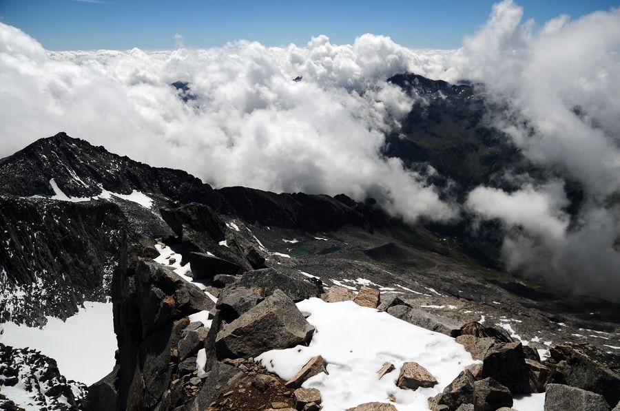 Bis man zu diesem Ausblick kommt, muss man allerdings einiges an Vorarbeit leisten. Denn die Tour auf die Hochalmspitze ist nicht nur konditionell, sondern auch technisch sehr fordernd.