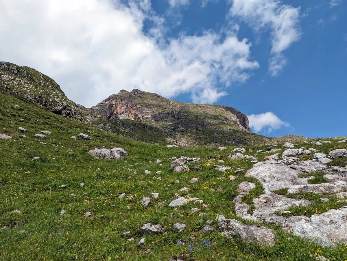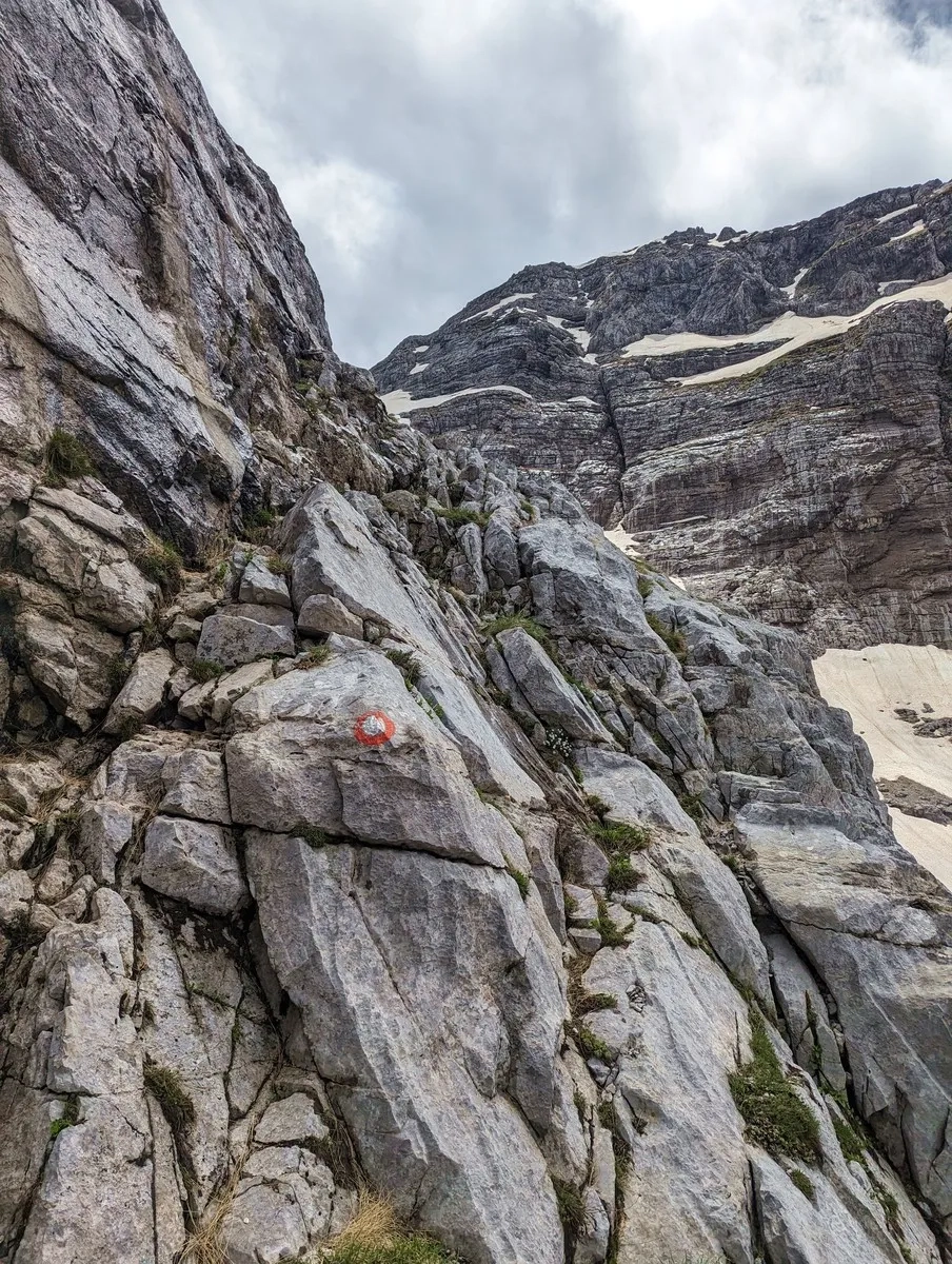 - Nun nach links queren und über einen felsigen Pfad mehrere hundert Höhenmeter auf montenegrinischer Seite bergauf bis auf etwa 2.400 Metern Höhe.