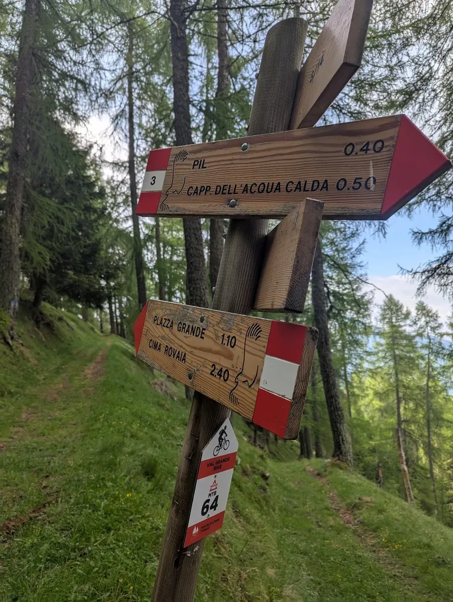 - Danach geht’s ab in den Wald. Hier wird’s verwinkelt und geheimnisvoll – zahlreiche Abzweigungen machen eine vorher geladene Navigation (Uhr oder App) fast zur Pflicht. Wegschilder? Vorhanden - aber keines welches den Cima Mattaciul aufweist.