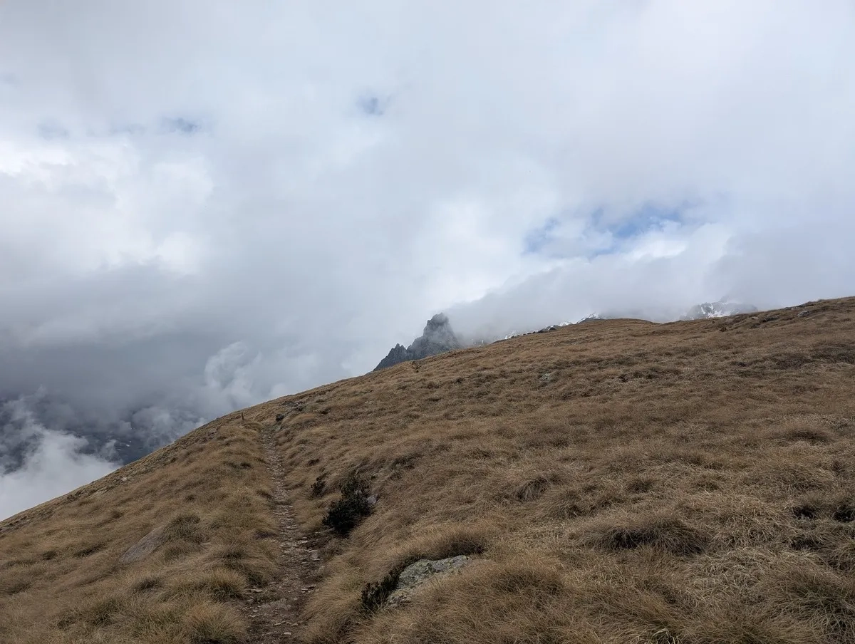 - Hier beginnt der Gegenanstieg. Der Weg Richtung Monte Pagano ist angenehmer – lang, breit und definitiv zahmer. Wer glaubt, das sei nun Spaziergang-Niveau, merkt spätestens am Kamm: flach ja, aber 2 km mit 200 Höhenmetern ziehen sich. Dafür oben: Sanftes Gipfelplateau, Kriegsrelikte und Weitblick inklusive.