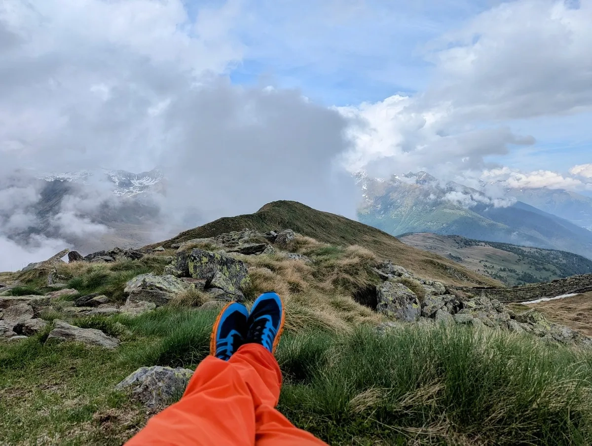 - Der Weiterweg verläuft am Grat entlang. Nun geht’s nordöstlich weiter, vorbei am Cima Rovaia (2.525 m) – bis die letzten 300 Höhenmeter zum Cima Mattaciul anstehen. Der Weg wird etwas anspruchsvoller, aber nichts, was ein motivierter Trailfan nicht meistern könnte. Oben: Panorama deluxe, inklusive Blick auf ferne Dreitausender. Gipfelkaffee? Pflicht!