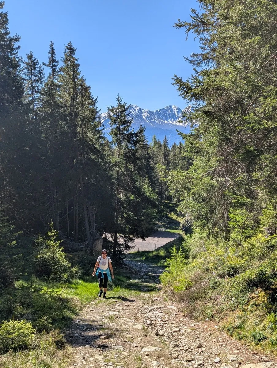 Leichte Trailschuhe oder stabile Turnschuhe reichen völlig aus – schließlich wird hier keine Expedition zum Mount Everest geplant. Die Forststraße ist breit und gut in Schuss. Feste Bergschuhe? Kann man tragen, muss man aber nicht. Viel Verpflegung braucht es ebenfalls nicht, wenn eine Einkehr geplant ist – außer natürlich, man möchte sich oben nicht in kulinarische Versuchung führen lassen (was allerdings ein Jammer wäre).