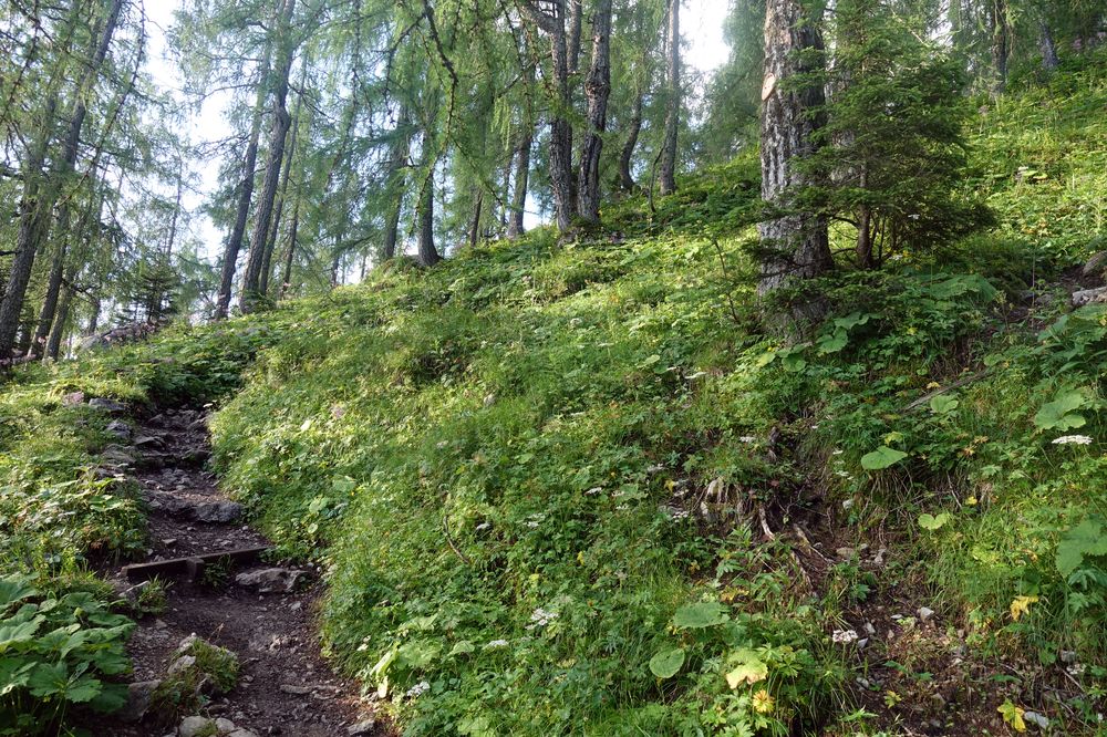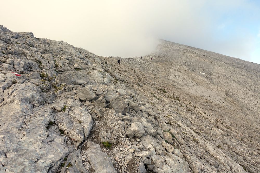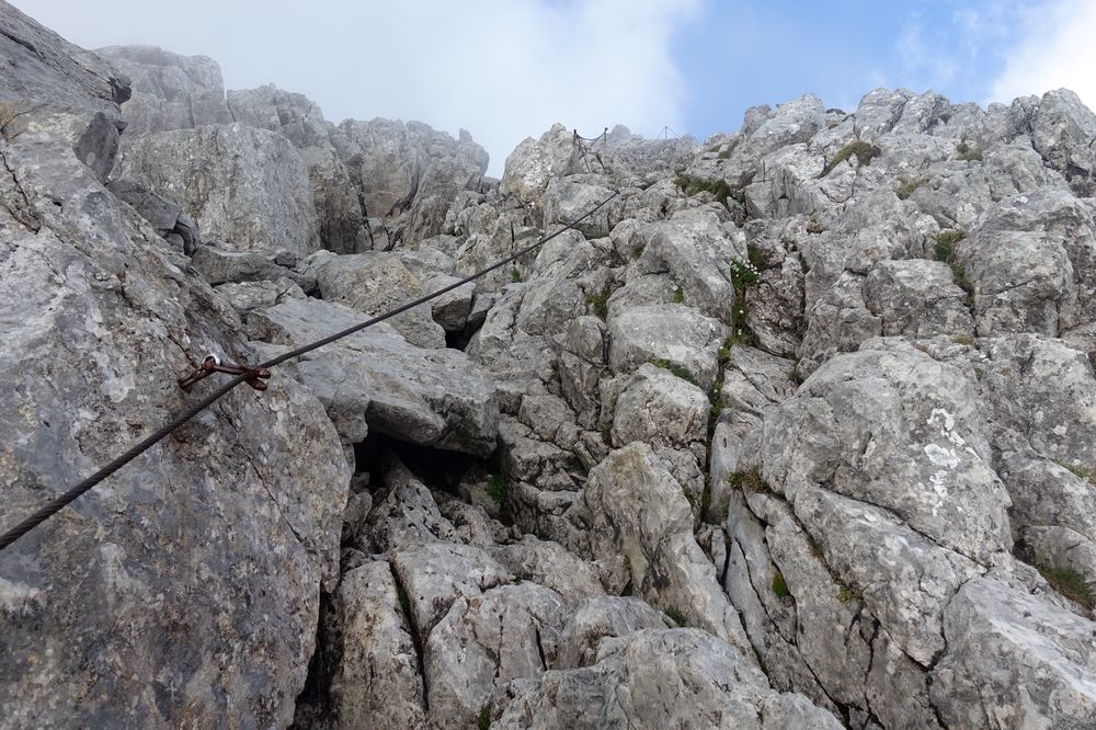 Ist das Watzmannhaus erreicht, wird die Tour langsam aber doch anspruchsvoller. Sanfte Waldwanderwege werden durch Gestein und Geröll ersetzt. Bis zum Hocheck-Gipfel sind die Schwierigkeiten aber sehr gering (ein Klettersteig mit A).