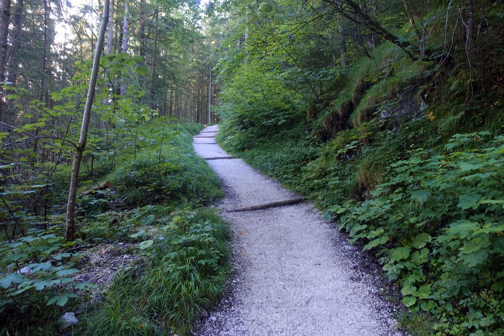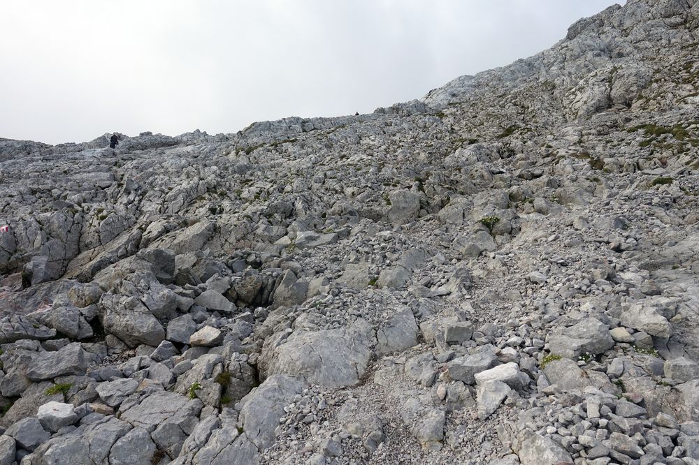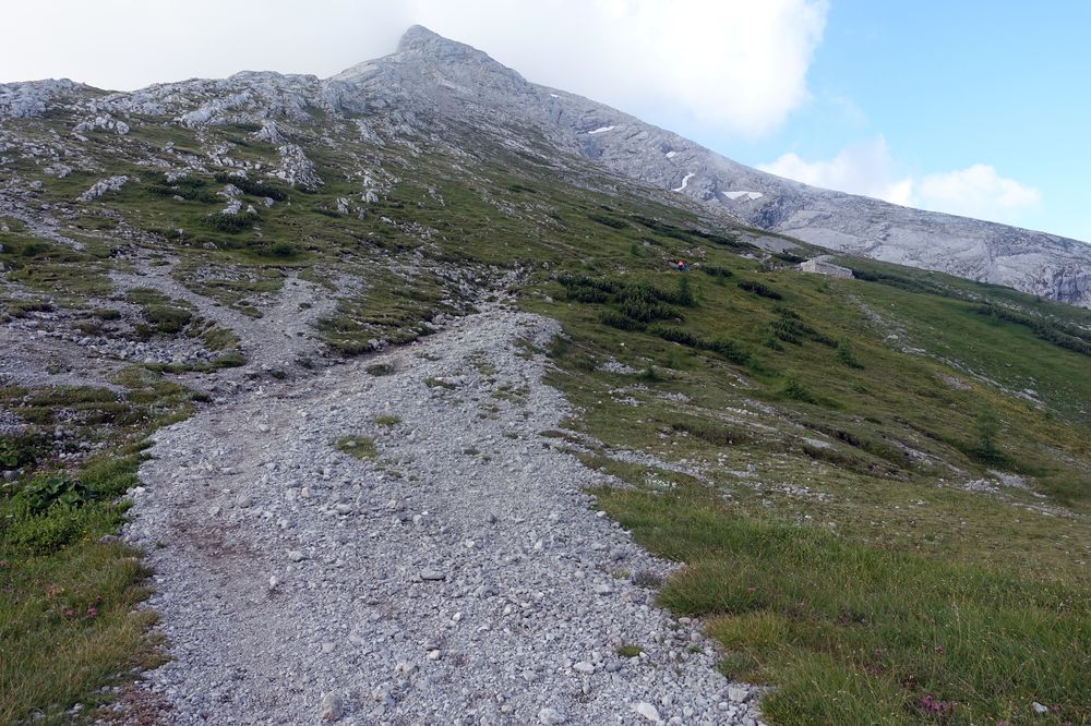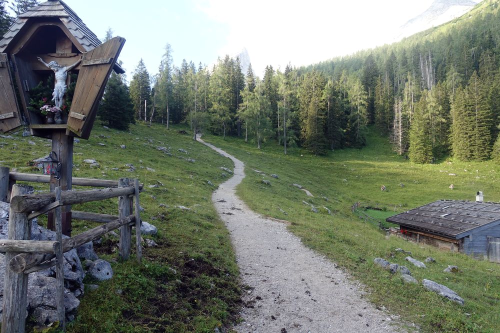 Der Abstieg geht anfangs über viel Geröll, aber kaum anspruchsvoll zur Wimbachgrieshütte. Von da an sind es noch knapp zehn Kilometer auf flachem bzw. leicht fallendem Terrain (ideal für schnelles Lauftempo) bis zum Parkplatz.