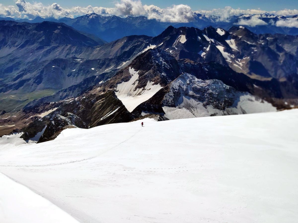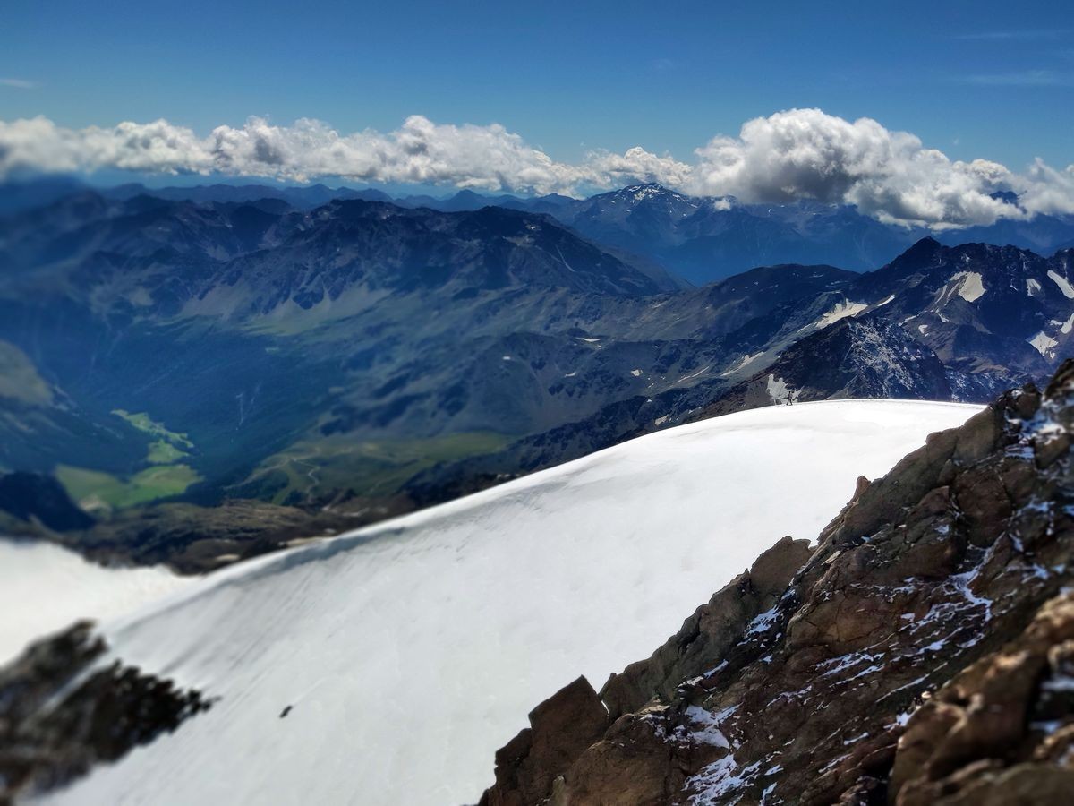 Sehr lange, aber technische einfache Hochtour über den Langtauferer Ferner auf die Weißkugel (Palla Bianca). Zu empfehlen als Zweitagestour mit Übernachtung auf der urigen Weisskugelhütte.