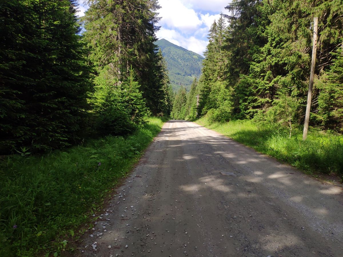 - Kurz nach Beginn des Waldes erreicht man das Ende eines Forstweges. Am Besten folgt man diesem anstatt sich noch ein Stück weiter dem nun extrem verwilderten Pfad durch den Wald weiter zu mühen.