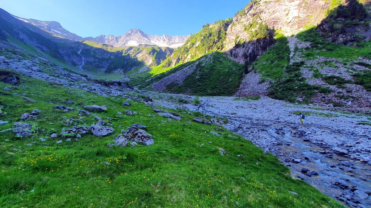 - Von der Maxhütte im Gunggltal dem nicht immer gut sichtbaren Pfad folgen und dabei mehrmals den Bach überqueren.