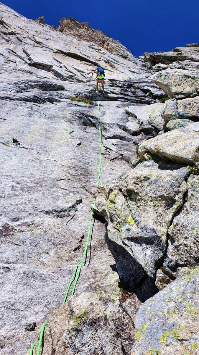 - Die vorletzte Seillänge wird nun im 3. Grad geklettert.