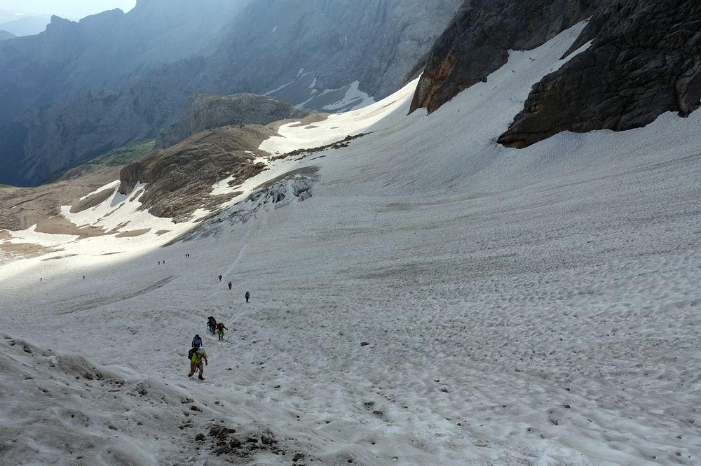 Zum Glück ist kein Spalt zwischen Gletscher und Einstieg