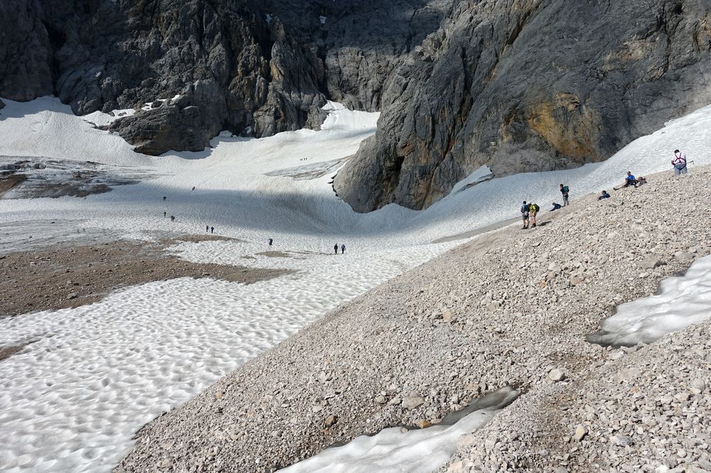 Abstiegsmöglichkeiten gibt es viele. So kann man gemütlich die Seilbahn nehmen oder auch den Aufstiegsweg wieder als Abstiegsroute wählen. Eine weitere Option ist der Stopselzieher, der auch als Aufstiegsroute (zwar eher selten) genutzt wird. Über den Stopselzieher gelangt man zum Eibsee, von diesem man via Bus oder Bahn Hammersbach erreicht oder auch über einen gemütlichen fünf Kilometer langen Wanderweg.