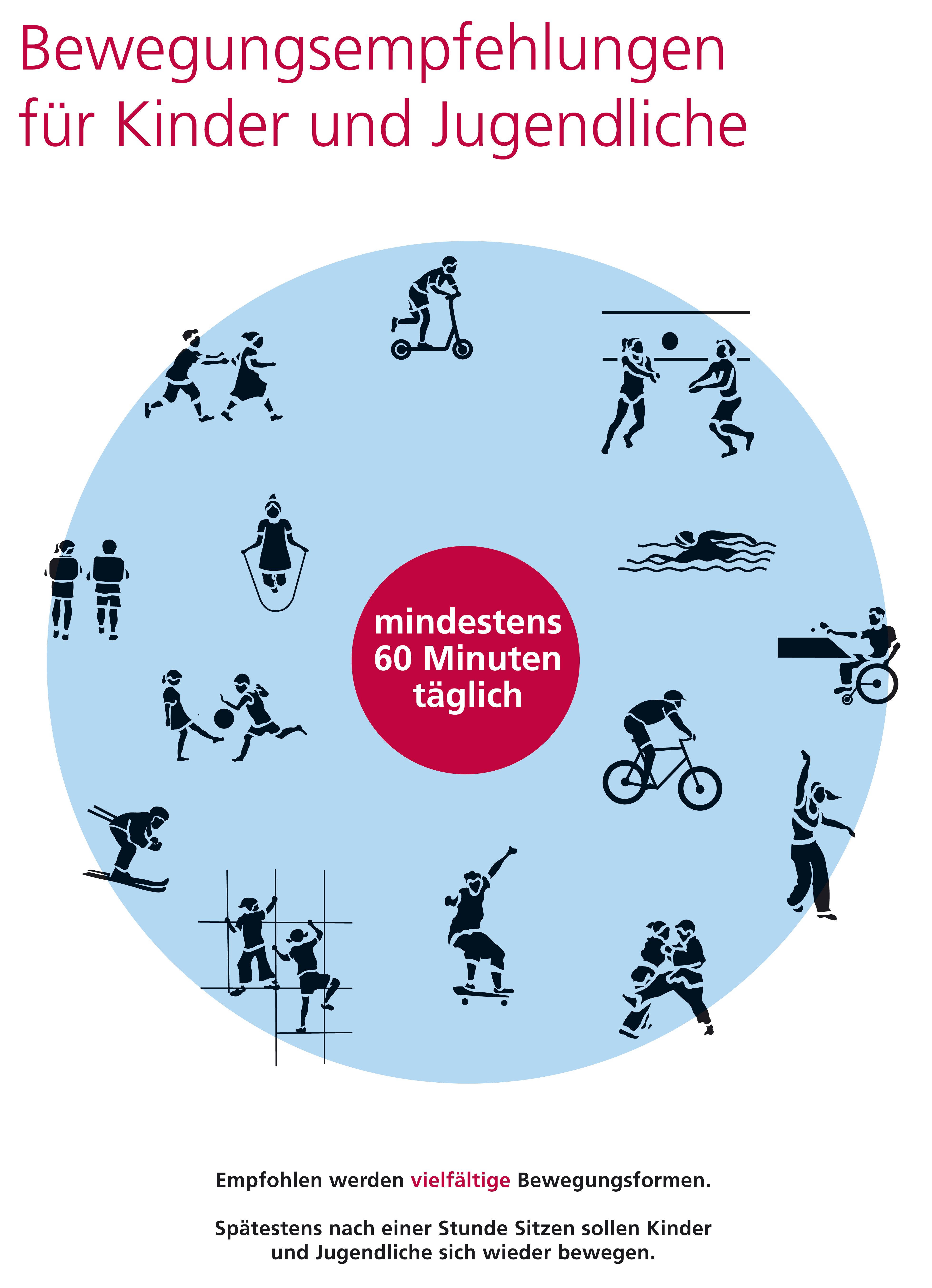 Doch wie viel und wie intensiv soll man sich überhaupt bewegen? Fachleute haben im Auftrag des Fonds Gesundes Österreich wissenschaftlich fundierte Bewegungsempfehlungen erarbeitet. Erwachsene sollten sich pro Woche 150 Minuten mit mittlerer Intensität oder 75 Minuten mit höherer Intensität bewegen. Kinder und Jugendliche sollten jeden Tag auf 60 Minuten Bewegung kommen.