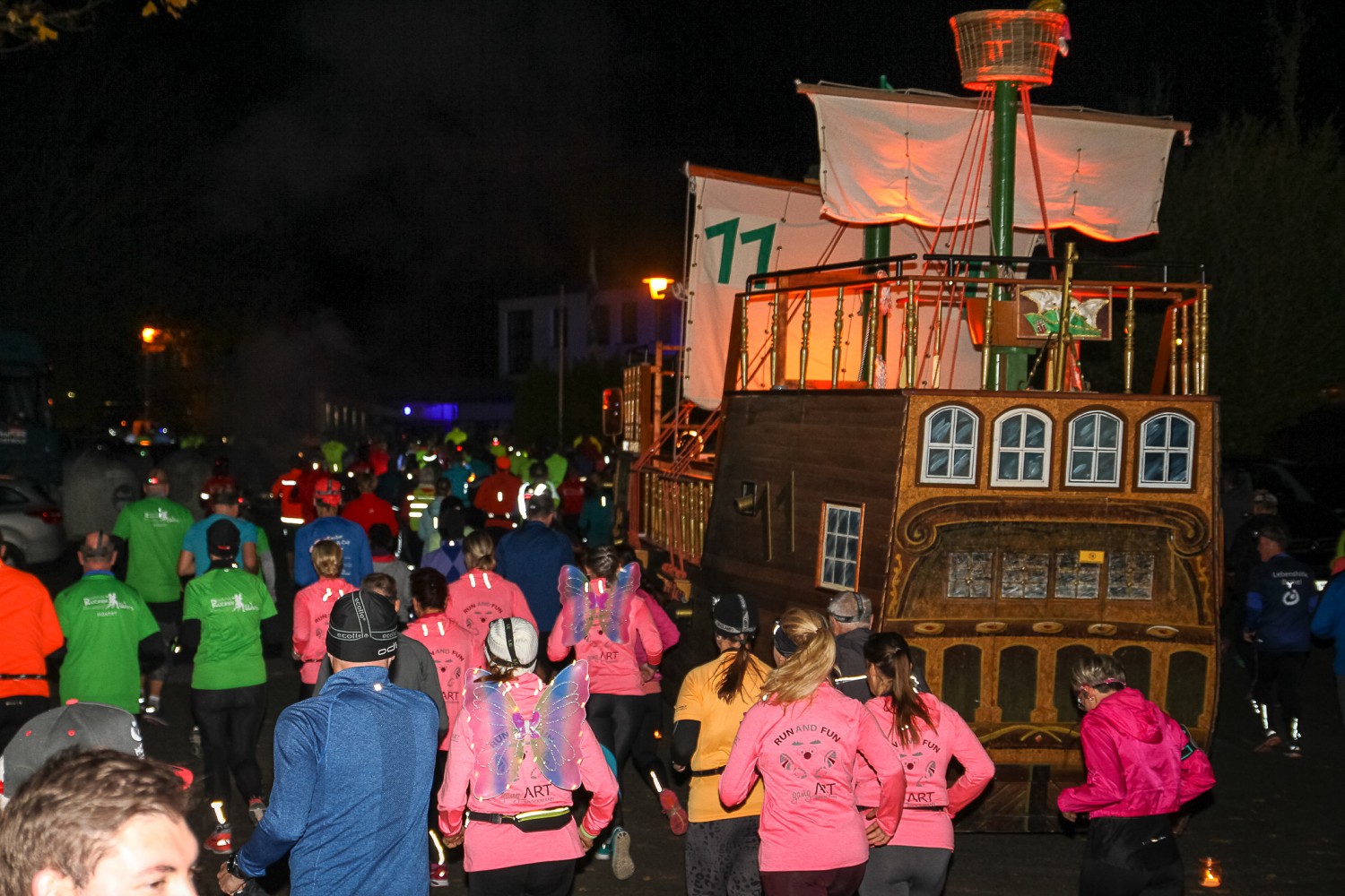 Die Närrische Nacht ist ein Elf-Kilometer-Nachtlauf -exakt elf Nächte vor dem "Elften Elften"- bei dem der Spaß absolut im Vordergrund steht.