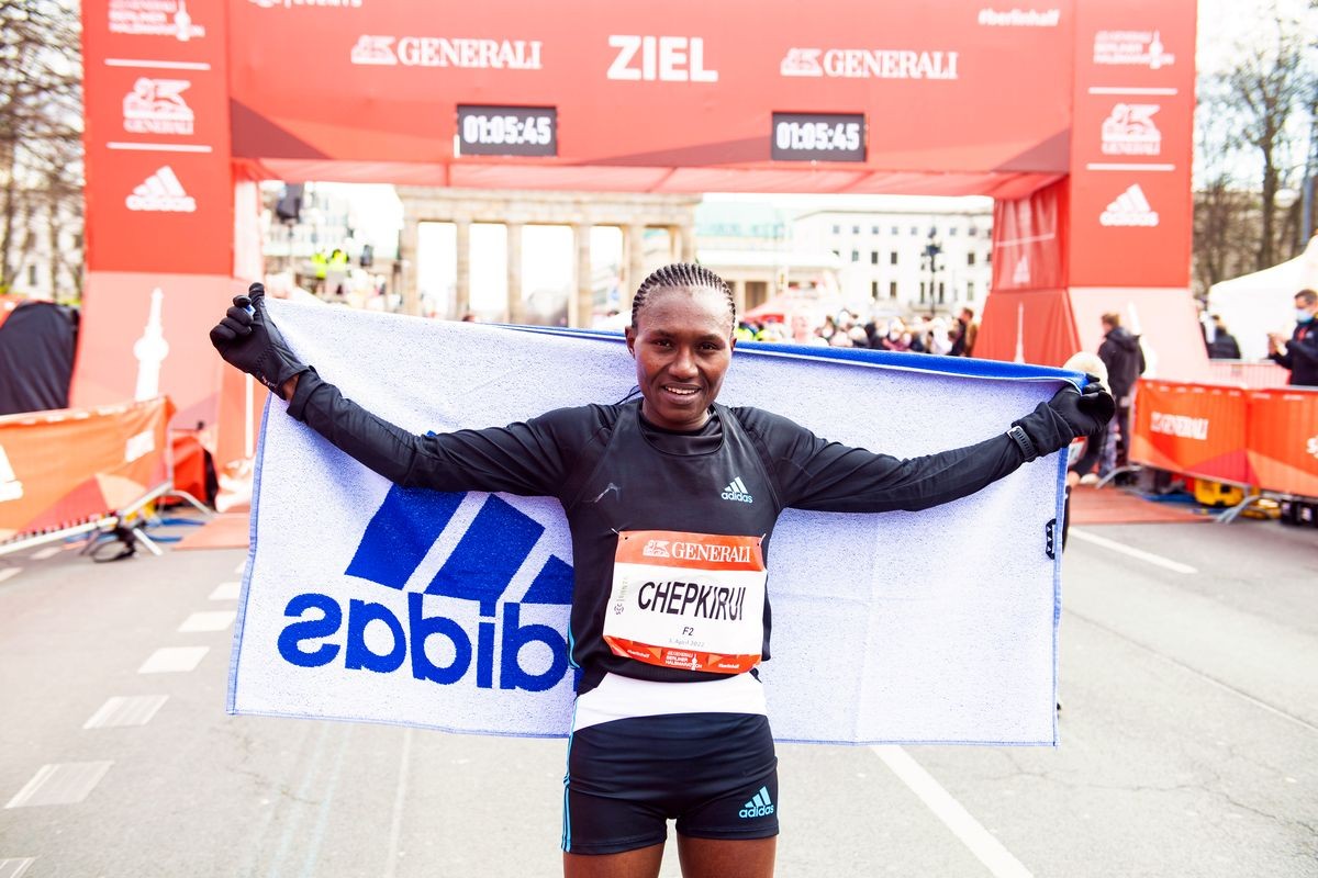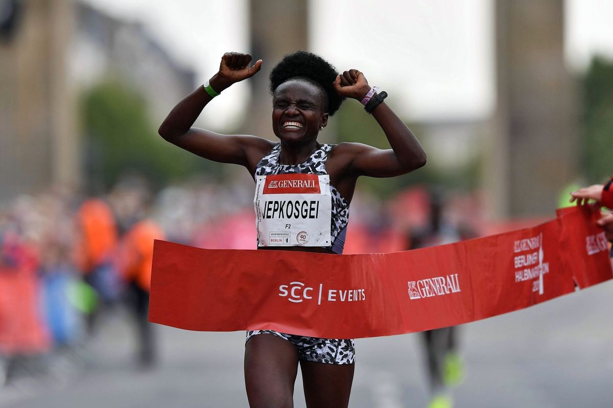 - 2021: Joyciline Jepkosgei (Kenia): 1:05:16 Stunden