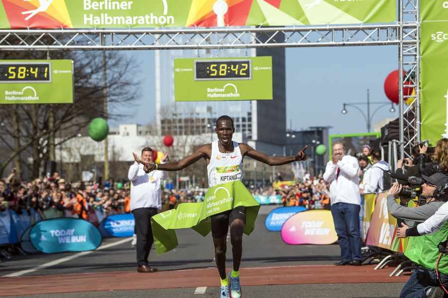 - Erick Kiptanui (Kenia): 58:42 Minuten im Jahr 2018