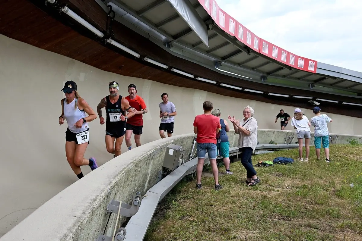 Gut 5 Kilometer Waldlauf (356 Höhenmeter) und anschließend 1,6 km auf der Bobbahn mit 15 Steilkurven und 15 % Steigung