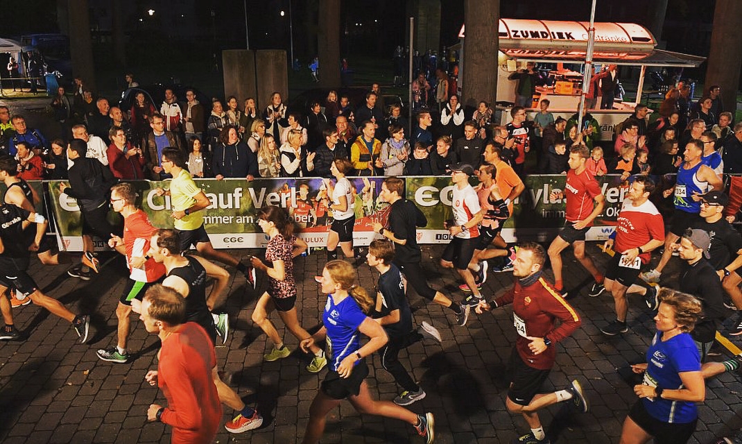 Der Citylauf in Verl ist ein echter Citylauf, wie man ihn sich vorstellt! Auf der 2,5km langen Innenstadtrunde findet man überall Fannester. Dadurch entsteht eine tolle Stimmung und als Läufer hat man kaum Zeit, durchzuschnaufen, weil hinter der nächsten Ecke schon der nächste DJ lauert, der Dir ordentlich einheizt. Den Auftakt machen knapp 1.000 Kinder und Schüler, anschließend laufen die Erwachsenen auf der amtlichen, schnellen Strecke um Bestzeiten oder nur zum Spaß.