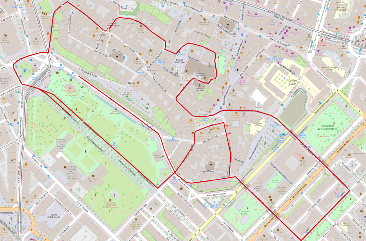 Course de l’Escalade : Start Parc des Bastions, Strecke des Laufes: in der Altstadt, Ziel: Parc des Bastions