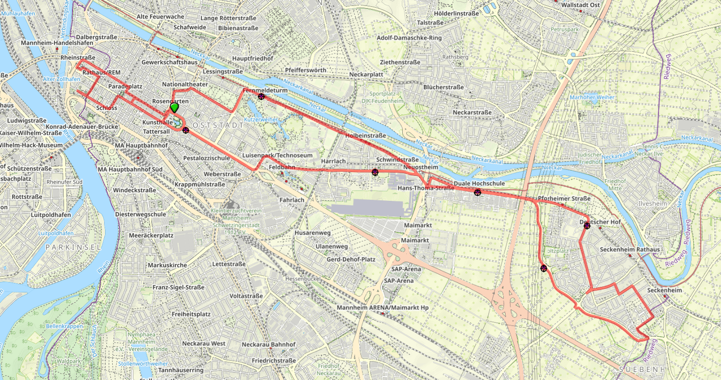 Genaue Streckenbeschreibung: Strecke Dämmer Marathon Mannheim