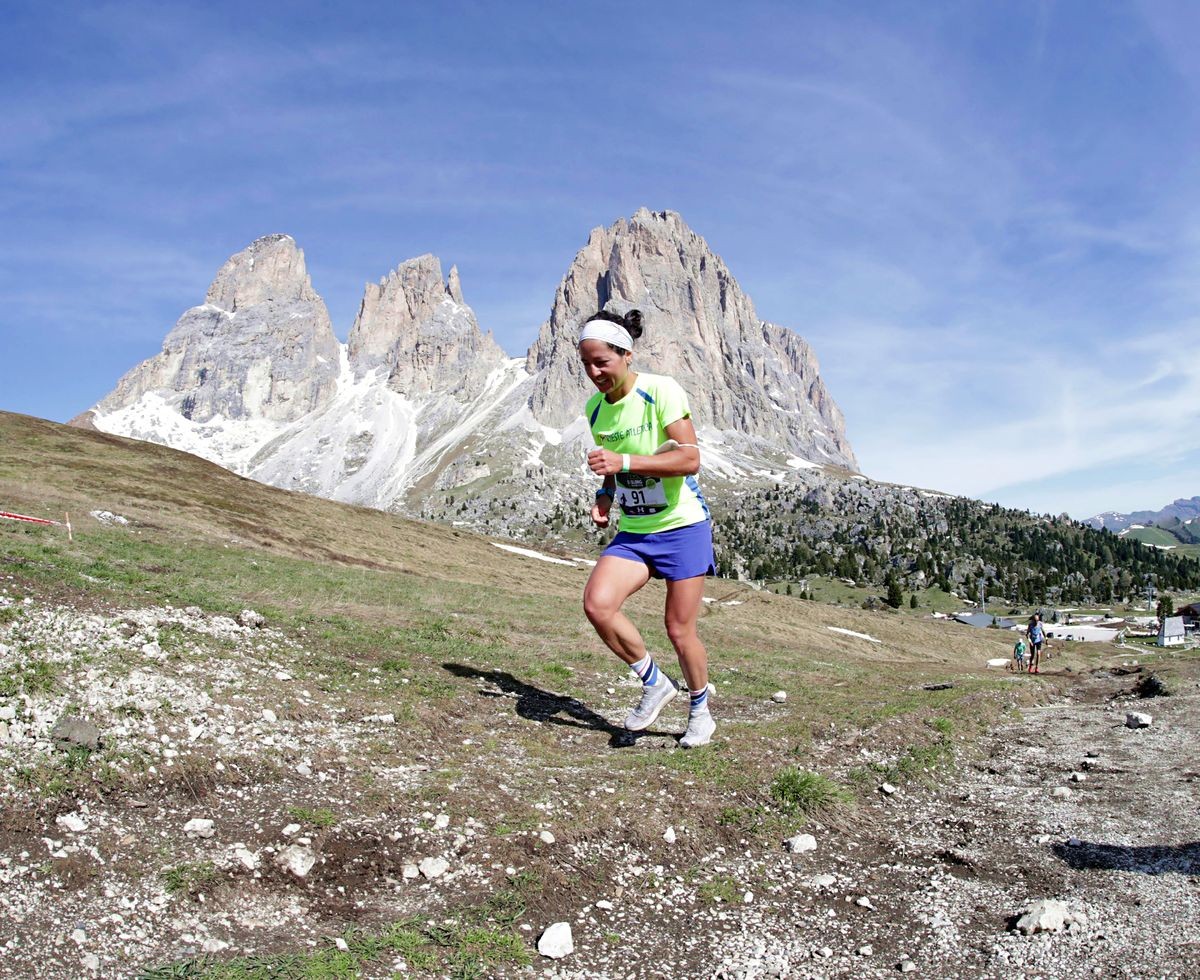 Die abwechslungsreiche Strecke führt über Schotterwege, Waldtrails und steinige Singeltrails. Die 21 km lange Strecke, weist 900 HM auf, wobei der Start auf 1636, den tiefsten Punkt darstellt und der höchste Punkt auf 2363 liegt. Zunächst führt die Strecke über die Emilio Comici Hütte (2153m) vorbei am Hotel Passo Sella Dolomiti Mountain Resort zum Sellajoch. Von dort geht es dann über die Salei Hütte (2225m) auf die Seite des Fassa-Tales (Region Trentino) und von dort direkt am Fuße des Plattkofels zur Plattkofelhütte (2300m), von wo der zum Teil technisch anspruchsvolle Abstieg zurück ins Ziel auf Monte Pana in Angriff genommen wird.