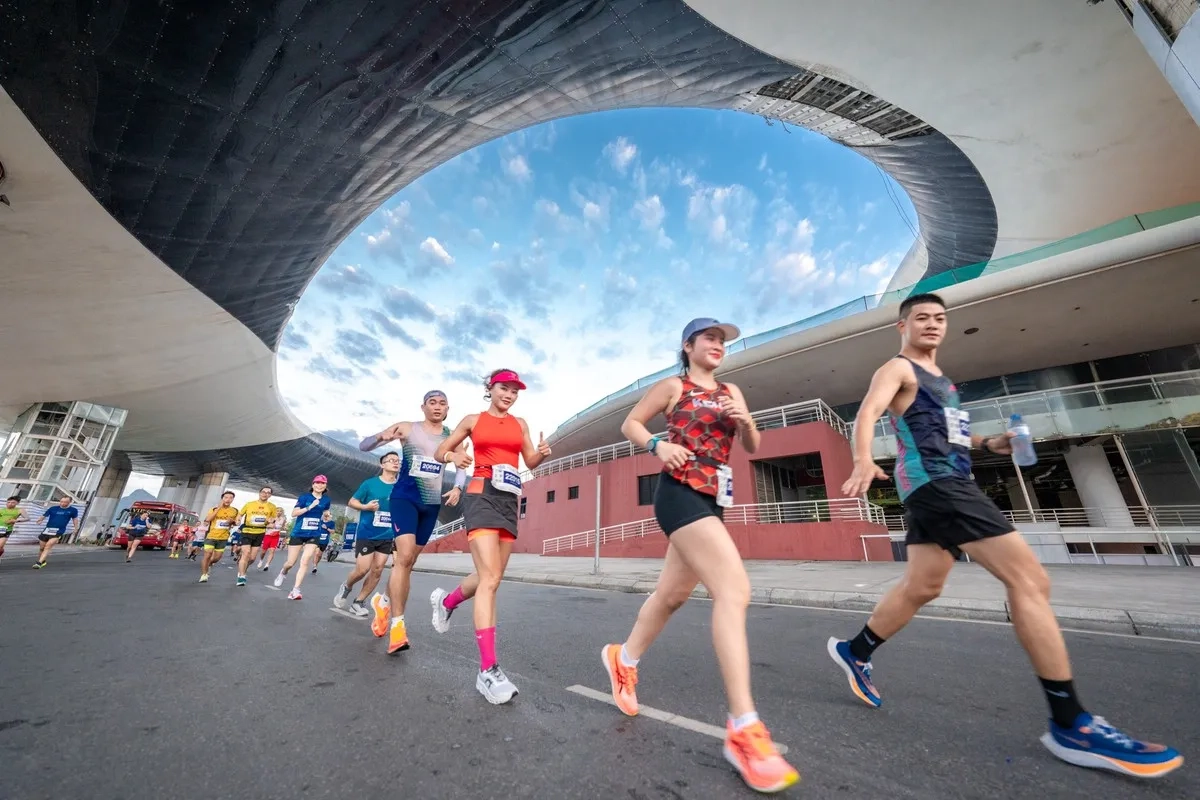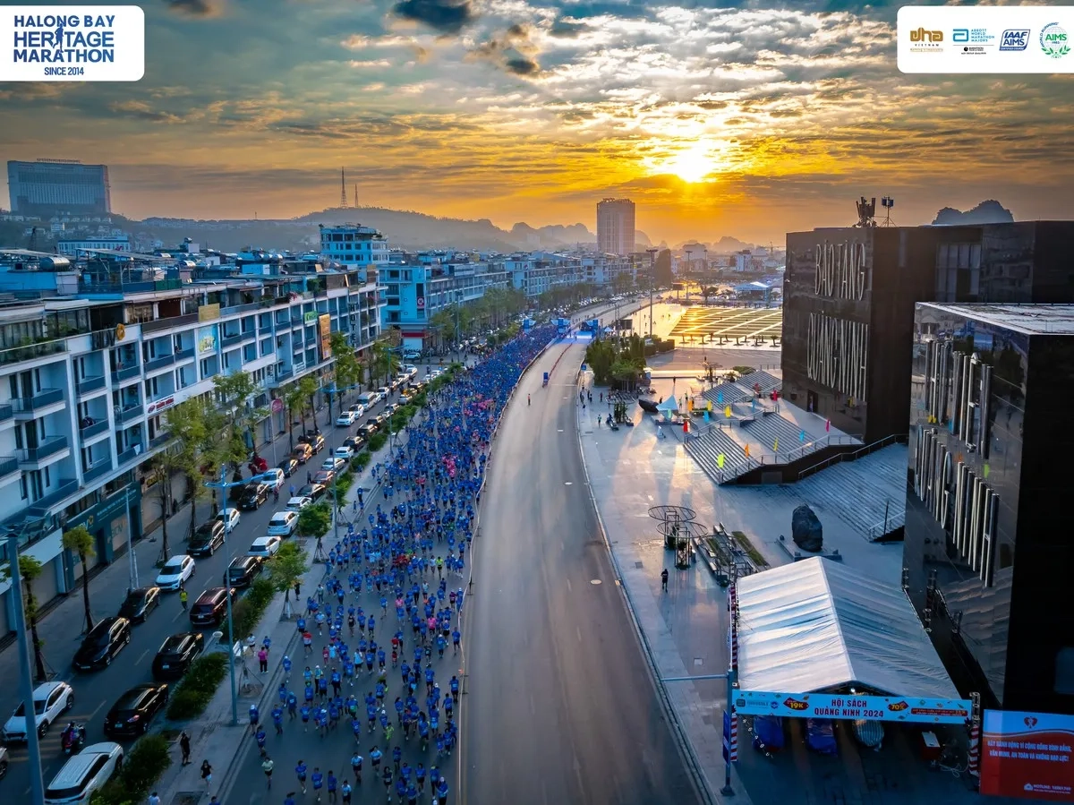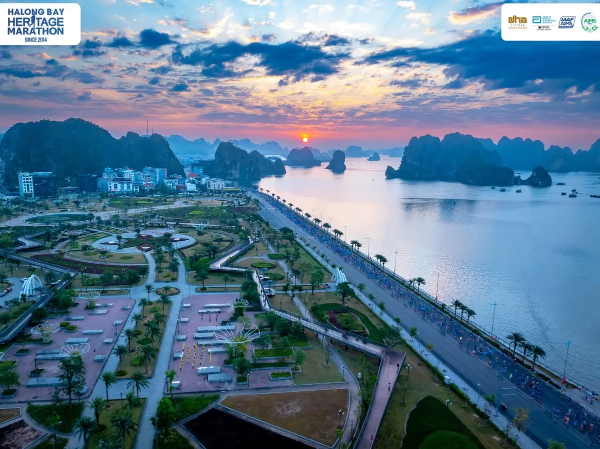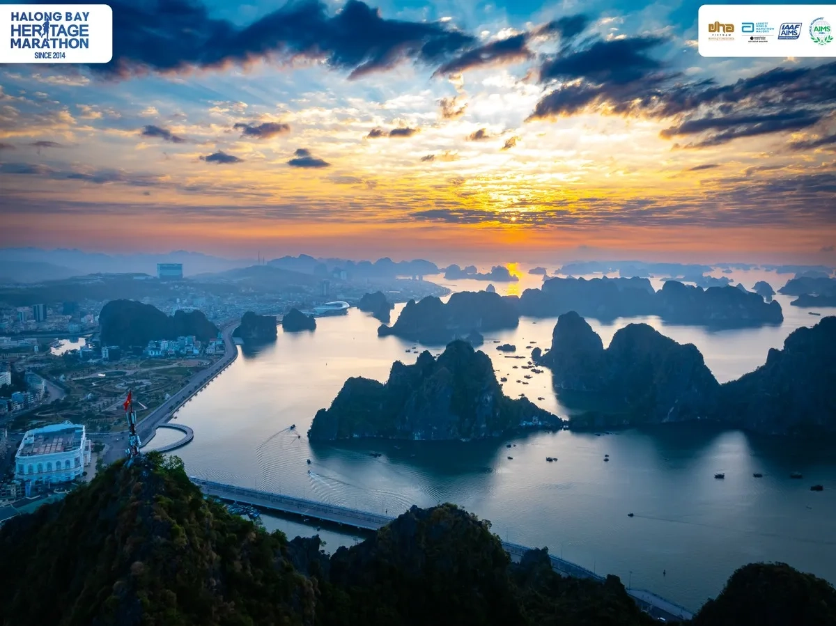Ein früher Beginn um 5 Uhr morgens wird durch den herrlichen Sonnenaufgang belohnt, der die ersten Schritte der Läufer begleitet. Die Route führt entlang der malerischen Dang Ba Hat-Straße und weiter über die beeindruckende Bai Chay-Brücke, die nachts in bunten Lichtern erstrahlt und die Cua Luc-Bucht überspannt.