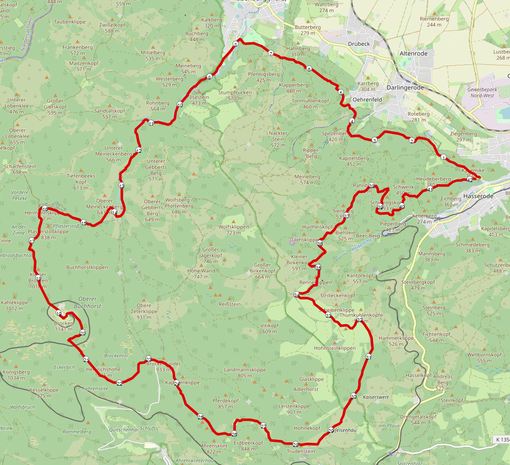 Streckenplan mit Karte und Streckenbeschreibung: Strecke Brocken Marathon & Harz-Gebirgslauf
