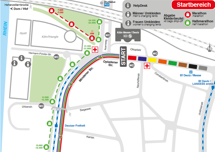 Zur interaktiven Streckenkarte inkl. Download der Route für die Laufuhr oder Smartphone-App: Strecke Köln Marathon