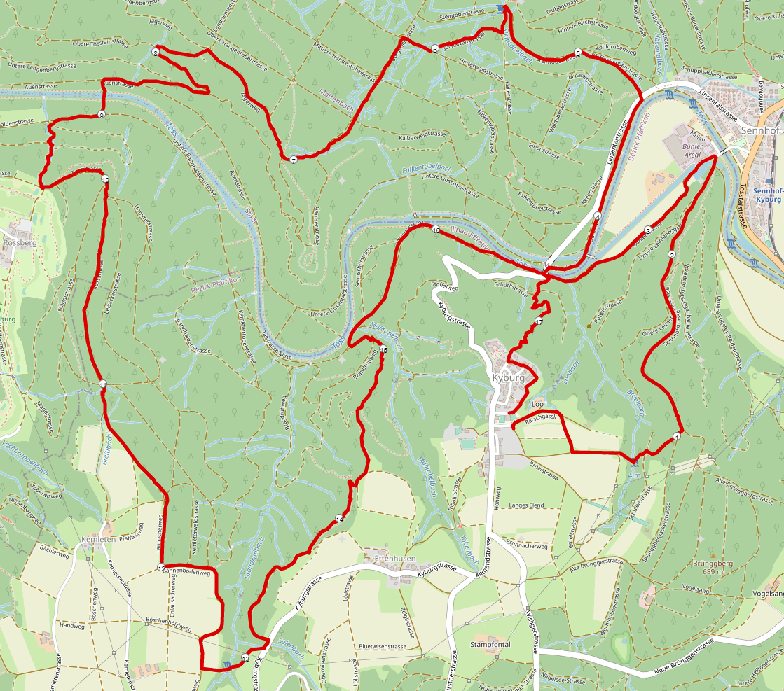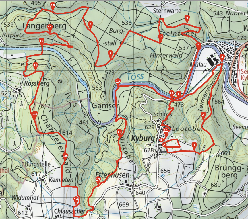 Strecke KyburgTrail mit Karte und Höhenprofil: Kyburglauf Strecke