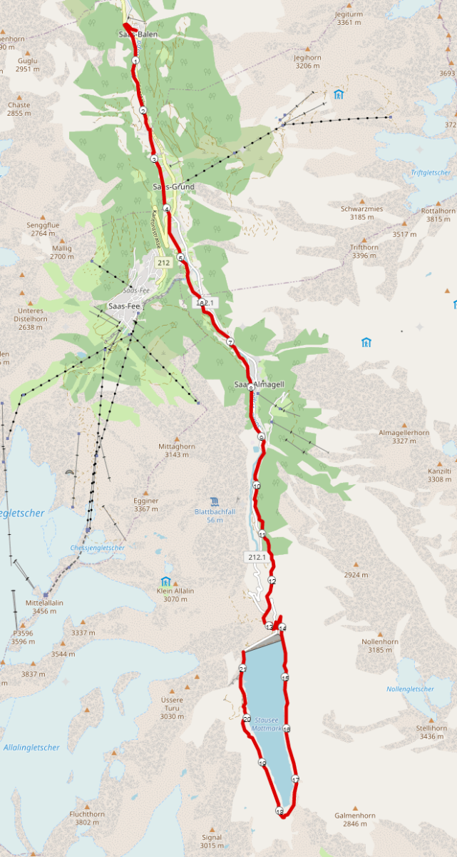 Strecke Mattmark Halbmarathon inkl. Karte und Höhenprofil: Mattmark Memorial Strecke