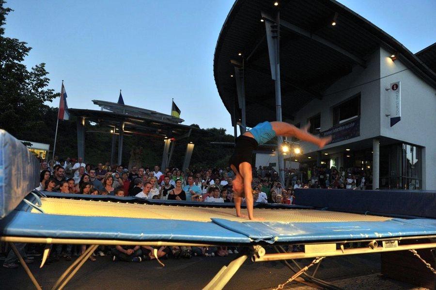 Einzigartige nächtliche Atmosphäre an der Laufstrecke durch das gastliche Weindorf Kröv mit Straßenkünstlern, Musikkapellen, Tanzgruppen und Feuerwerk über der Mosel.