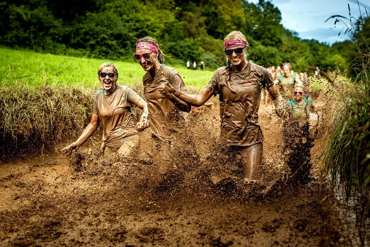 5 Kilometer langer Hindernislauf mit 15 Hindernissen für Frauen.