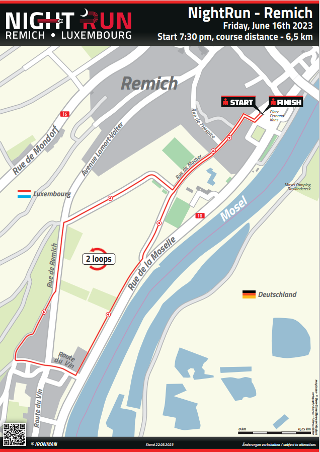 Wir feiern unsere Premiere! In 2023 laufen wir zum ersten Mal gemeinsam in den Nachthimmel hinein – bei einem stimmungsvollen, sommerlichen Abendlauf eröffnen wir das Triathlon-Wochenende in Remich. Wir möchten alle Läufer in allen Leistungs- und Altersgruppen, alle Freunde und Familien der Triathleten und Triathletinnen, sowie alle sportbegeisterten Menschen in der Region aufrufen sich den Herausforderungen unserer 6,5km Laufstrecke zu stellen. Ob Anfänger oder ambitionierter Hobbyläufer, ob jung oder alt, egal ob Du eine neue Bestzeit jagst oder endlich mal wieder einen Abend mit deinen Liebsten verbringen willst, hier kannst Du zeigen, wie sportlich Du bist!