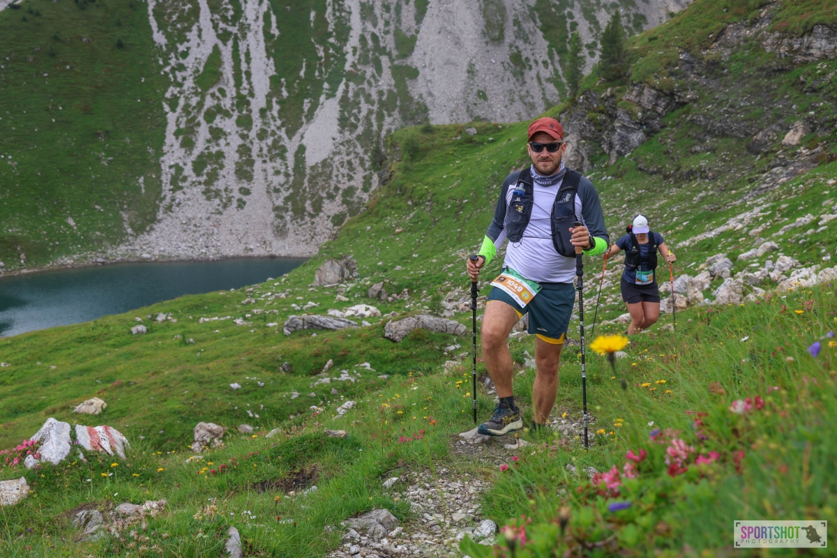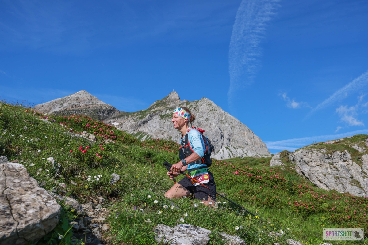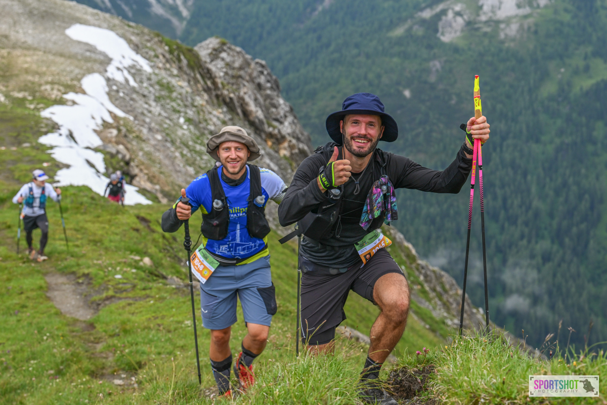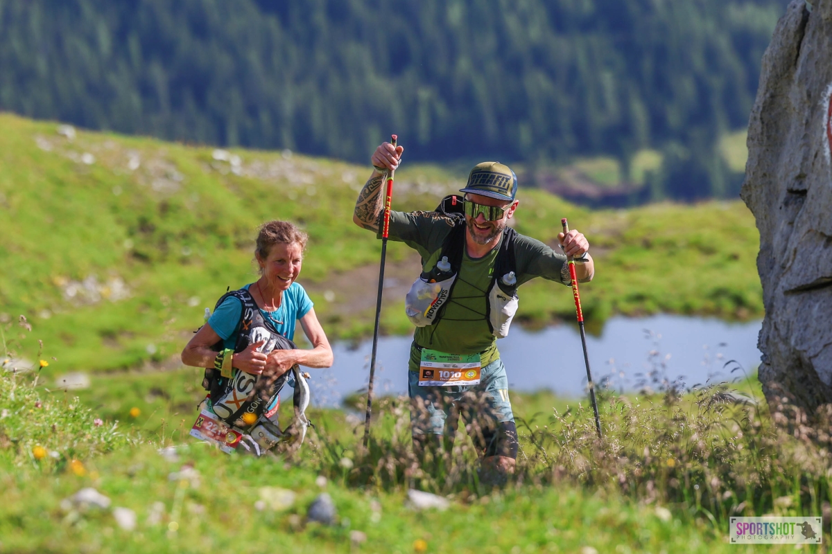 • Mit technisch anspruchsvollen Passagen und leichten Kletterstellen im 1. Grad sowie einem längeren abschüssigen Geländeabschnitt (Trail Ultra und Marathon Trail)
