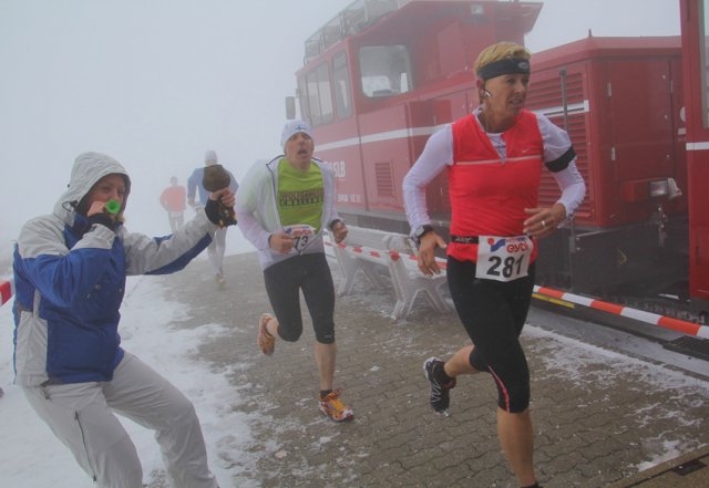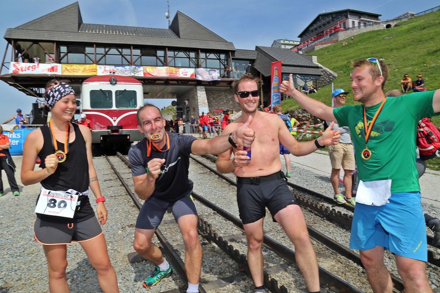Dazu gehört auch der ehemalige „Überflieger“ Andreas Goldberger, der im Ziel bei der Station Schafbergspitze schon mehrfach einen „makellosen Telemark“ setzte. Sieger (über sich selbst) sind somit alle, die es bis ins Ziel schaffen und dort die wohlverdiente Finisher-Medaille in Empfang nehmen – auch wenn manche Passagen, vor allem auf Grund der bis zu 26-prozentigen Steigung, im zügigen Gehschritt absolviert werden.
