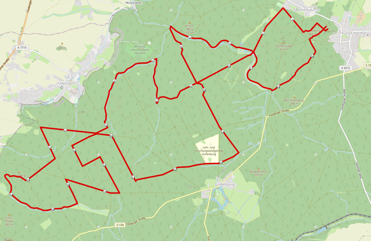 Strecke 30 km mit Karte und Höhenprofil: Tharandter Waldlauf Strecke 30 km