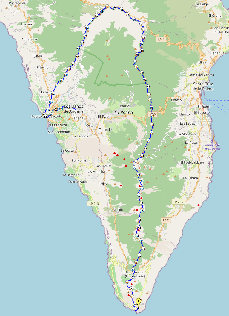 Zur Streckenkarte inkl. Streckenbeschreibung und Download der Route für die Uhr: Strecke Transvulcania