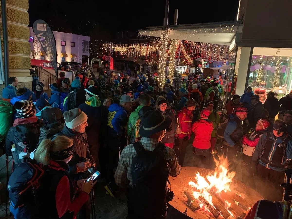 - Stimmungsvoller Start mit Feuerschalen und heißen Getränken vor der Gemeinde Velden.
