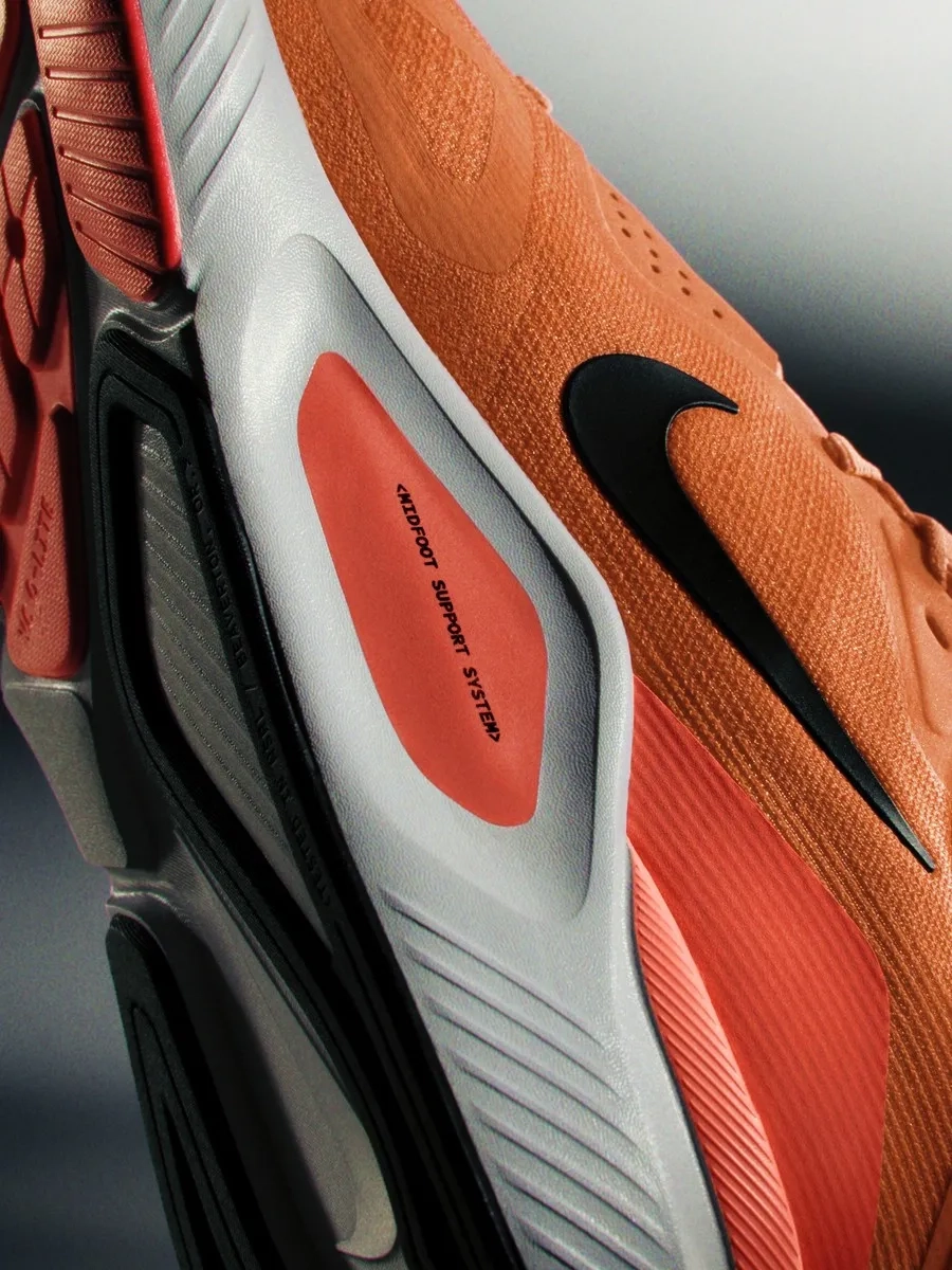 Das Herzstück des Structure 26 ist das innovative Nike Support-System im Mittelfußbereich. Es stützt dein Fußgewölbe und die seitliche Ferse, sodass jeder Schritt kontrolliert, aber nicht eingeschränkt ist. Gleichzeitig sorgt die ReactX-Mittelsohle für ein geschmeidiges Abrollen – weich genug, um deine Gelenke zu schonen, aber reaktionsfreudig genug, dass du dich wie auf Rollen fühlst.
