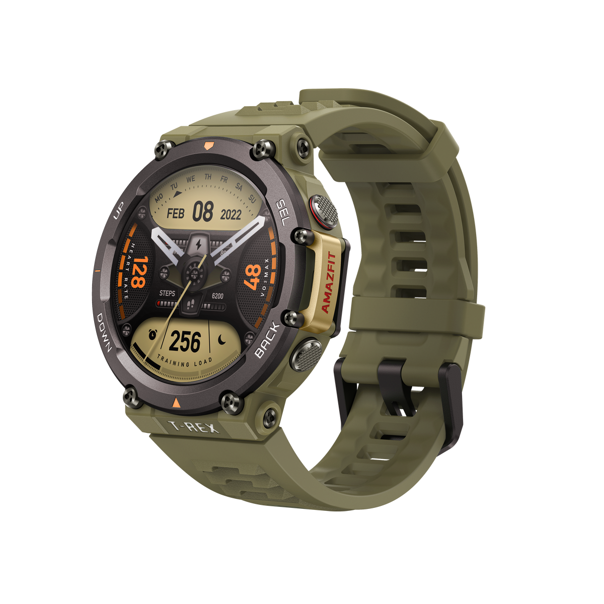 Der T-Rex 2 bietet außerdem über 150 Sportmodi – darunter Triathlon, Jagen, Angeln, Golfschwung und Surfen – und mit einer Nennleistung von 10 ATM hält er einem Wasserdruck stand, der einer Tiefe von 100 m entspricht.