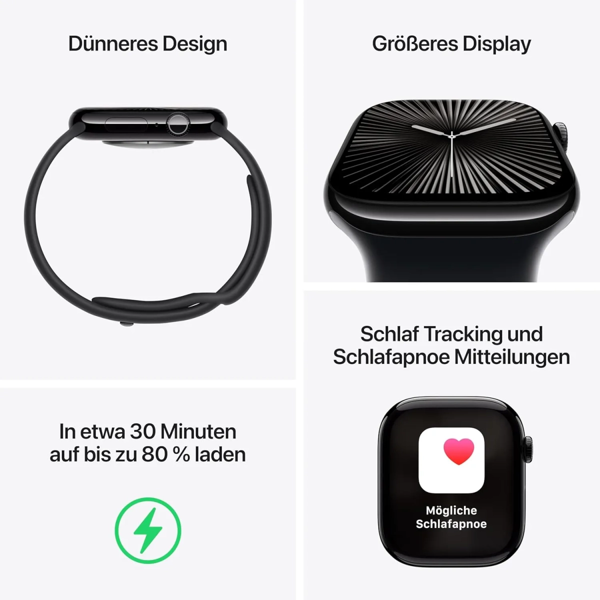 Du suchst eine smarte Lösung, um deine Fitness zu verbessern und deine Gesundheit im Blick zu behalten, ohne dabei auf Komfort zu verzichten? Die Apple Watch Series 10 bietet dir alles, was du brauchst – und mehr. Mit modernsten Funktionen und einem eleganten, leichten Design bringt sie deine tägliche Routine auf ein neues Level.