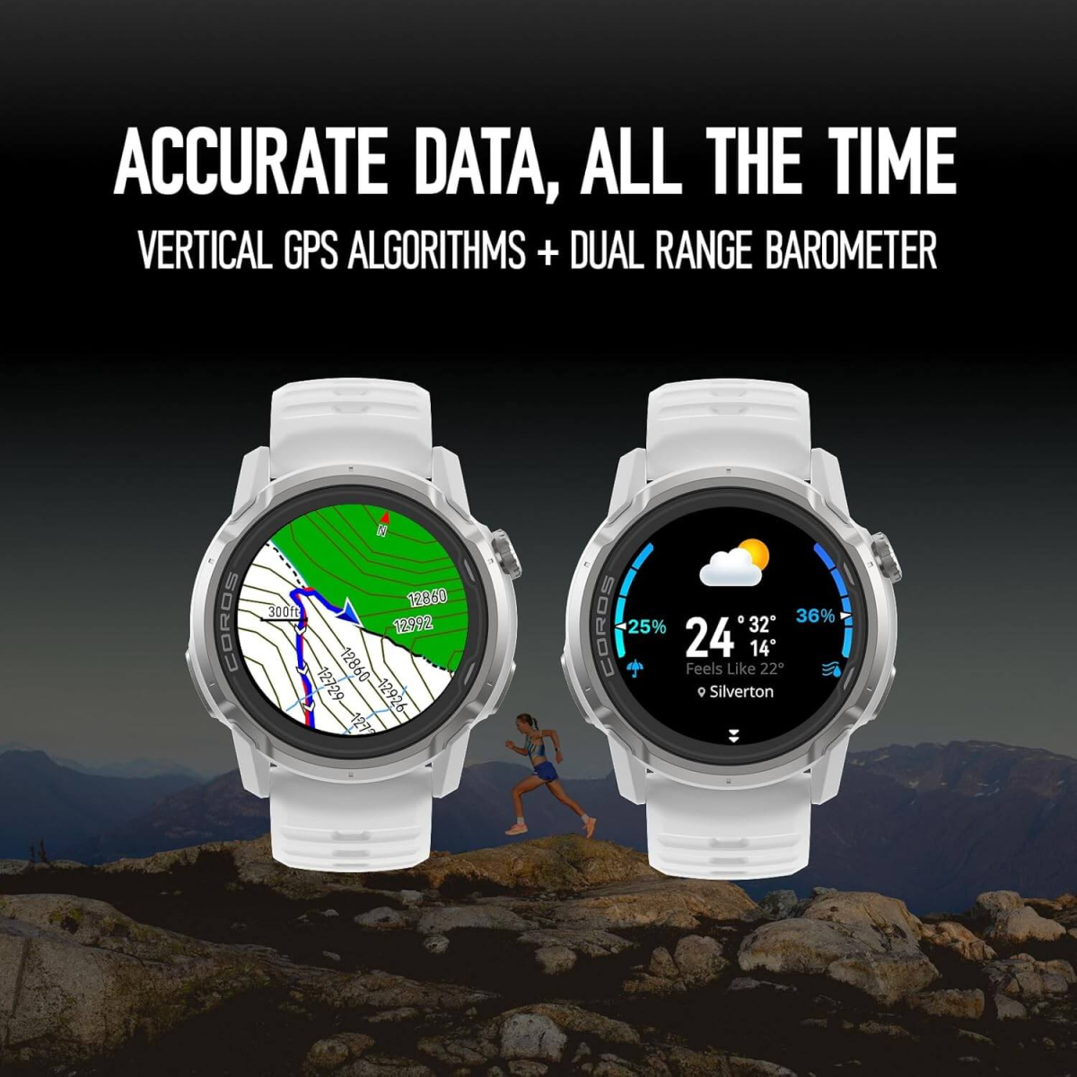 Der bislang genaueste vertikale GPS-Algorithmus von Coros arbeitet mit Dual-Frequenz-Tracking, einem präzisen Herzfrequenzsensor und einem Barometer mit zwei Skalen. Nach deiner Aktivität fehlen keine Höhenmeter mehr – die Daten stimmen.