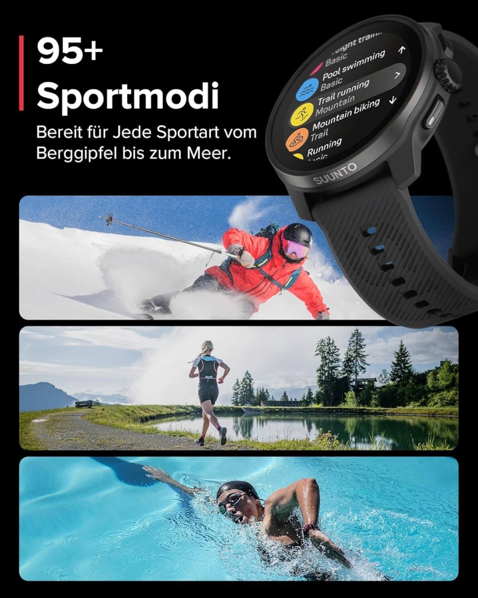 Neben dem sportlichen Nutzen bietet die Suunto Race S auch umfassende Alltagsfunktionen wie 24/7 Aktivitäts- und Herzfrequenzaufzeichnung sowie smarte Benachrichtigungen.
