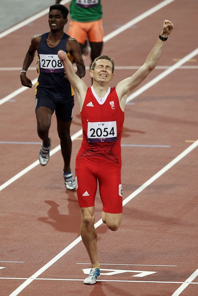 Dienstag Abend 20:52 Uhr Ortszeit, Olympiastadion London: Günther Matzinger startet zum Höhepunkt seiner bisherigen Karriere!Auf Bahn 6 nimmt der 25-jährige Salzburger die 400 Meter in der Klasse T46 in Angriff – und wie: Matzinger zieht schon in der ersten Kurve an einem vor ihm laufenden Konkurrenten vorbei und fliegt förmlich die Gegengerade entlang. Aus der zweiten Kurve kommt der Österreicher bereits als Führender und baut diese Führung bis zum Zielstrich auch noch aus.