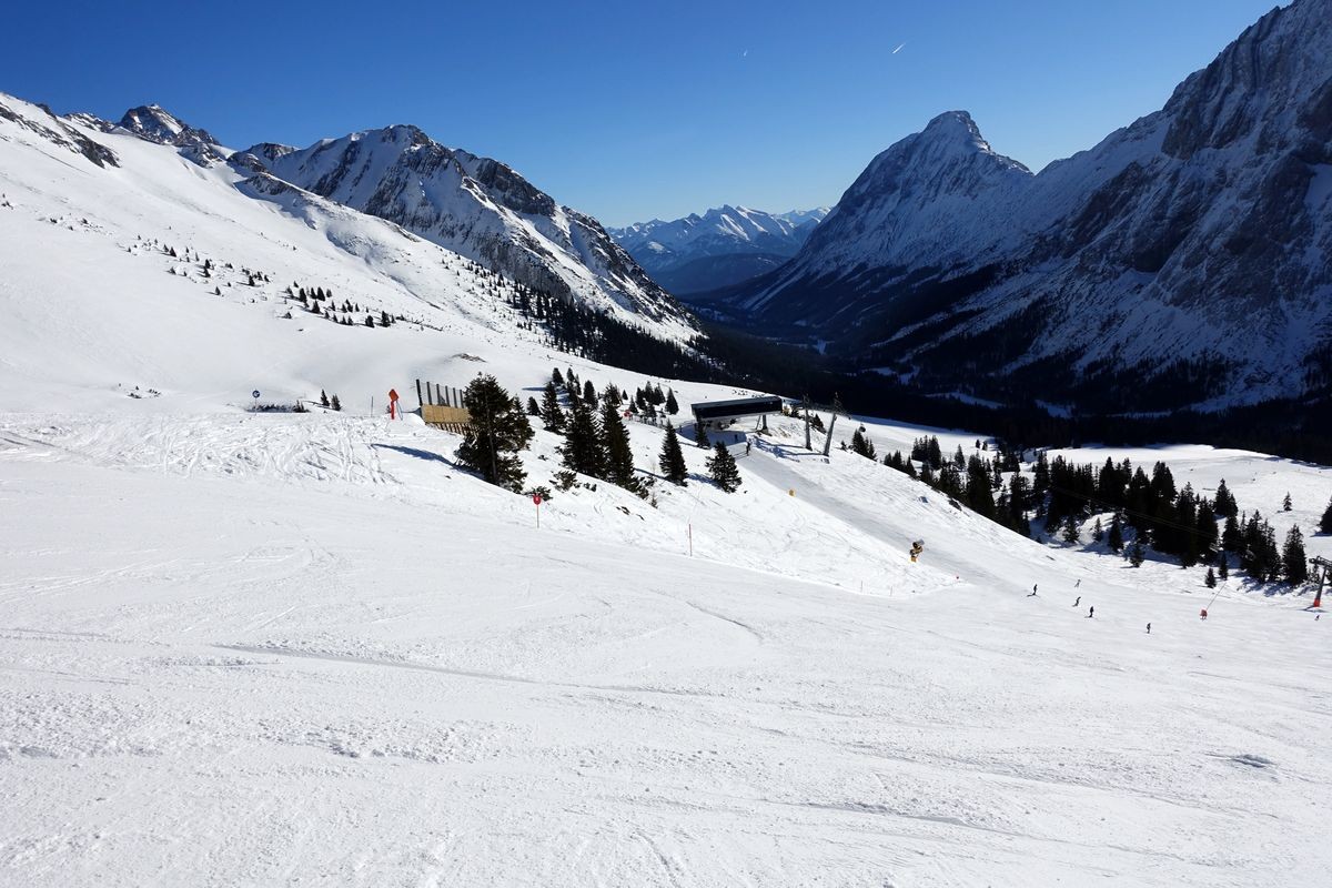 Größe:Das Skigebiet Ehrwalder Almbahn besteht aus 27,5 Pistenkilometern, davon 18 leichten, 7.5 mittleren und 2 schweren Pistenkilometern.