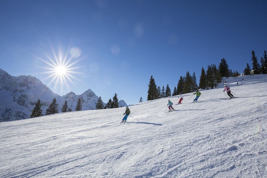 Das Skigebiet Ehrwalder Almbahn befindet sich in der Tiroler Zugspitz Arena am Fuße der Zugspitze. Am Ortsrand von Ehrwald startet die Achterkabinenbahn ins Wintersportgebiet der Ehrwalder Alm. Im Skigebiet stehen 27,5 km bestens präparierte und beschneite Pisten bereit, die besonders für den Familienurlaub geeignet sind. Moderne Beschneiungsanlagen sorgen für eine Schneesicherheit bis in den April.