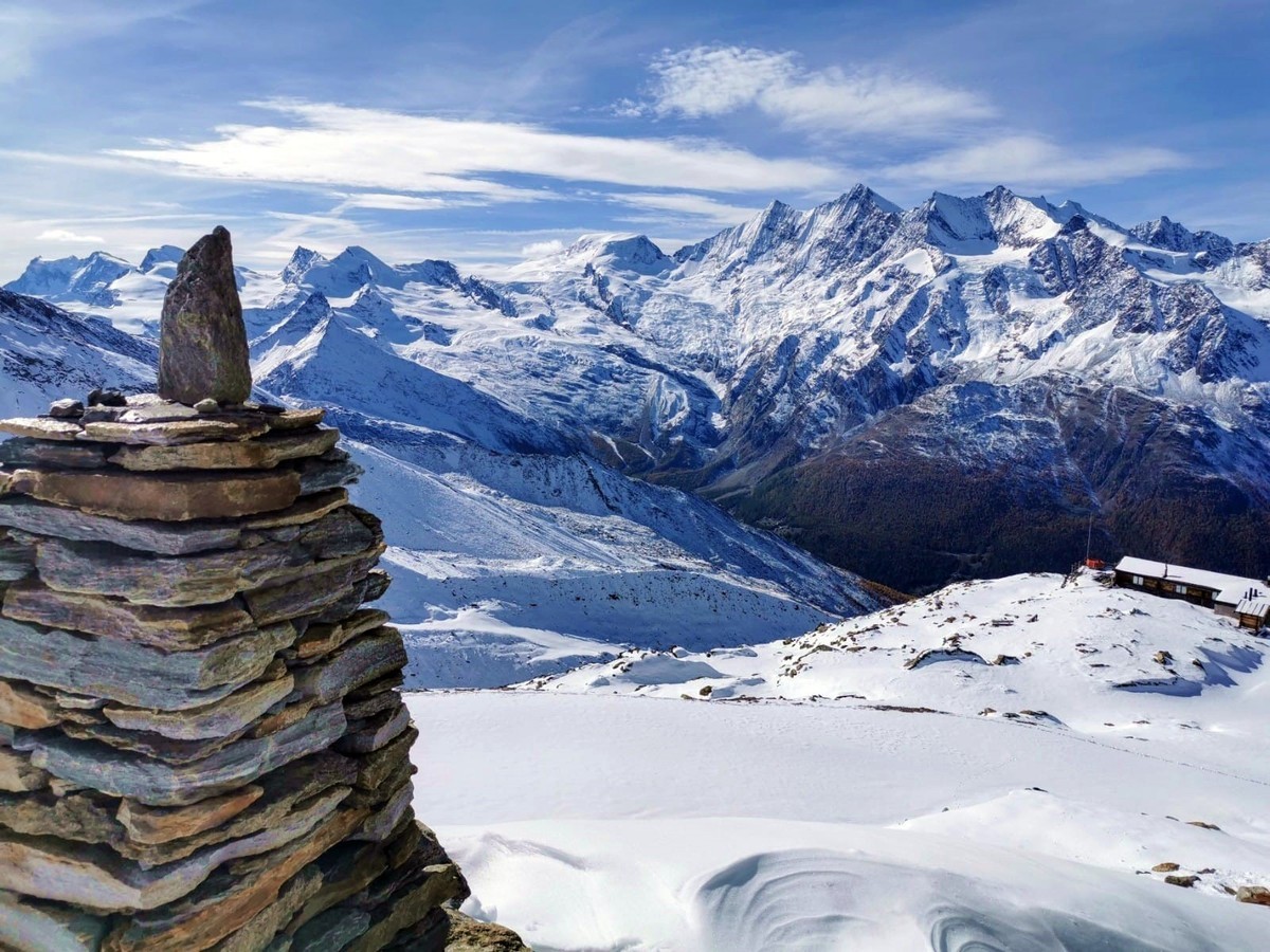 Die Region rund um Saas-Grund bietet mehr als nur Skifahren. Ein Highlight ist der Panoramablick auf die Viertausender, den Sie bei einer gemütlichen Winterwanderung oder einer Schneeschuhwanderung genießen können. Besonders beliebt sind die Wanderwege rund um den Kreuzboden, von wo aus Sie herrliche Ausblicke auf die Bergwelt und das Saastal haben.