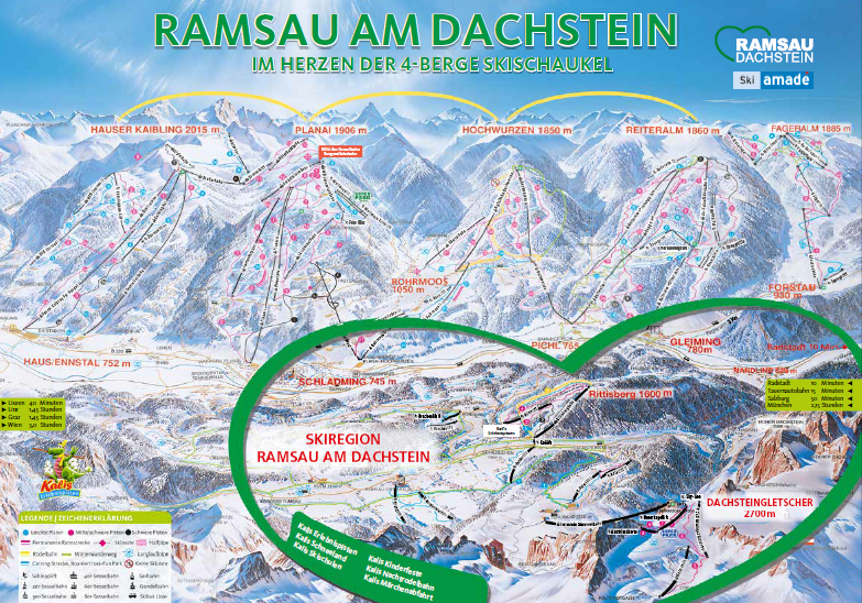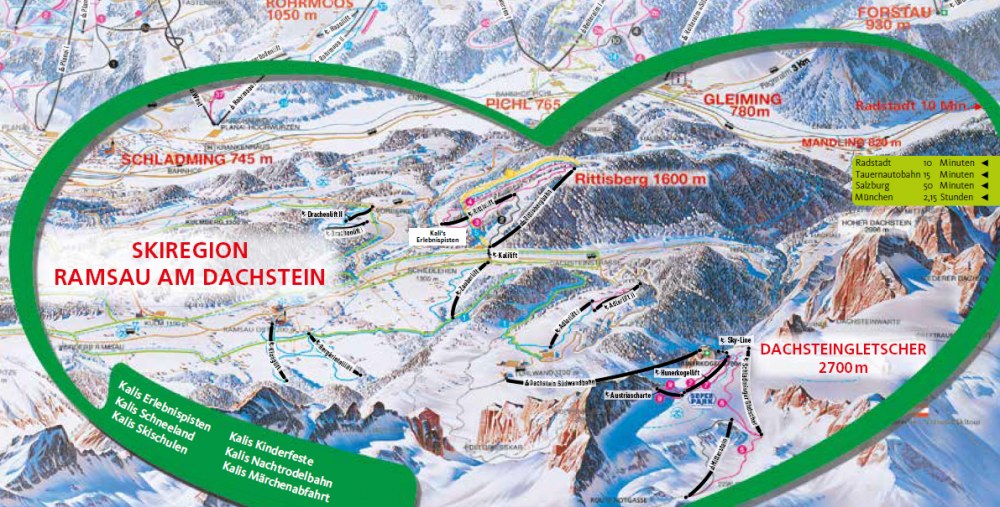 | Größe: | Das Skigebiet Skiregion Ramsau am Dachstein besteht aus 25,0 Pistenkilometern, davon 14 leichten, 10 mittleren und 1 schweren Pistenkilometern. |
