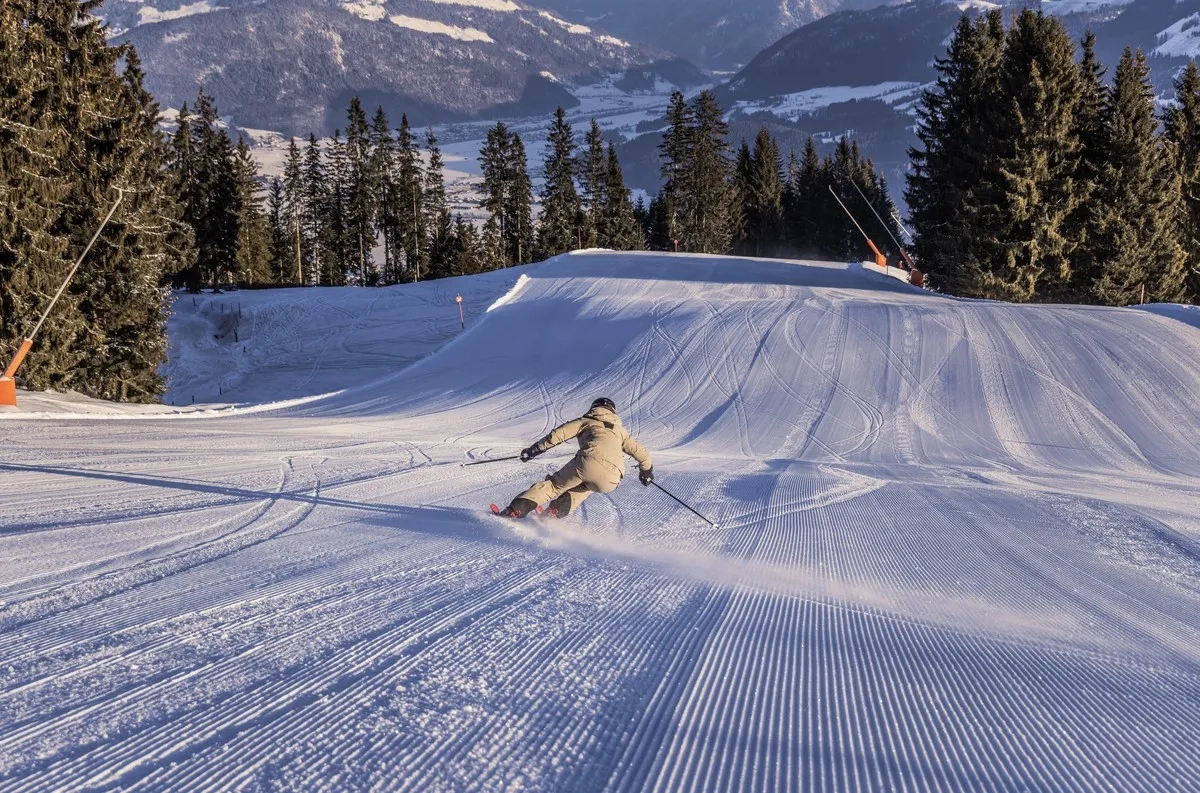 Das Skigebiet ist besonders bei Familien beliebt, da es eine Vielzahl an breiten, leicht zu bewältigenden Pisten und ein gut ausgebautes Kinderland bietet. Hier können die Kleinen unter professioneller Anleitung ihre ersten Schwünge im Schnee üben. Für erfahrene Skifahrer bieten die Hänge rund um den Harschbichl anspruchsvollere Abfahrten, die durch atemberaubende Ausblicke auf das Kitzbüheler Horn und die umliegenden Alpen überzeugen.